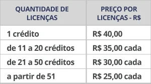 Cada crédito é composto pelas 9 licenças descritas abaixo.